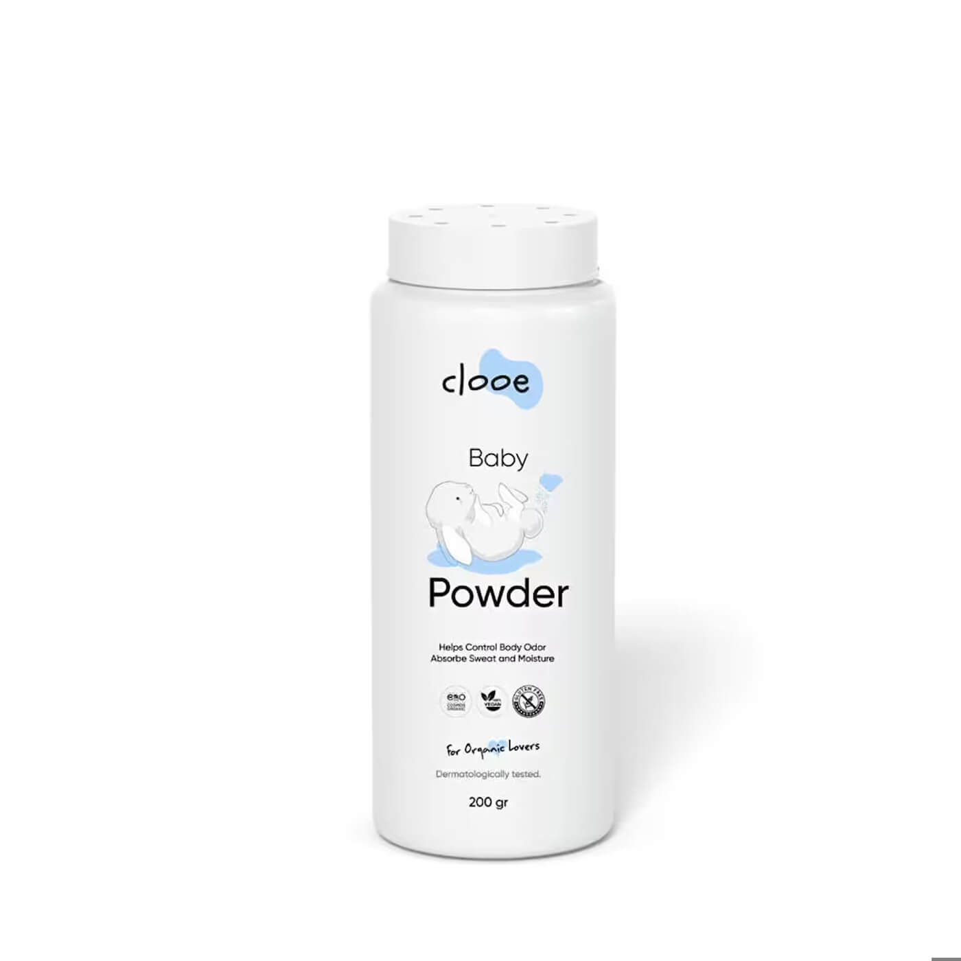 testlerden geçmiş, vegan ve COSMOS sertifikalı olan CLOOE Bebek Pudrası, hassas