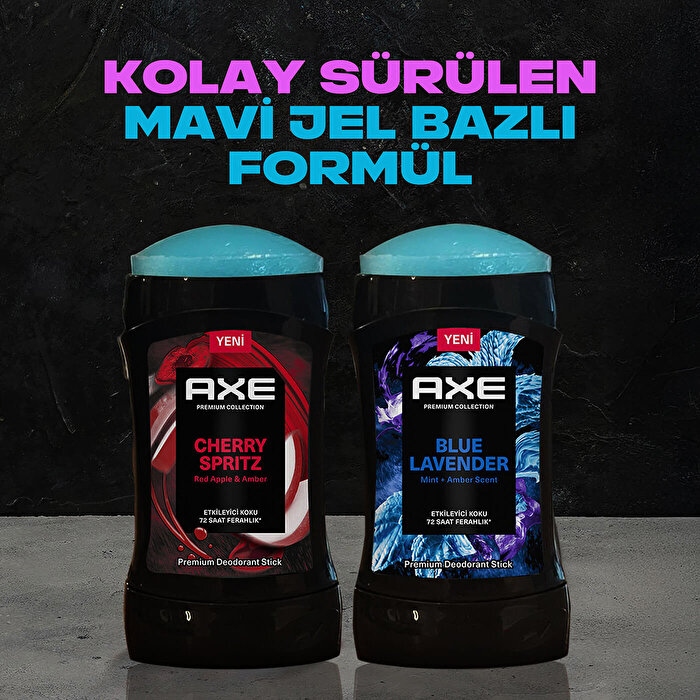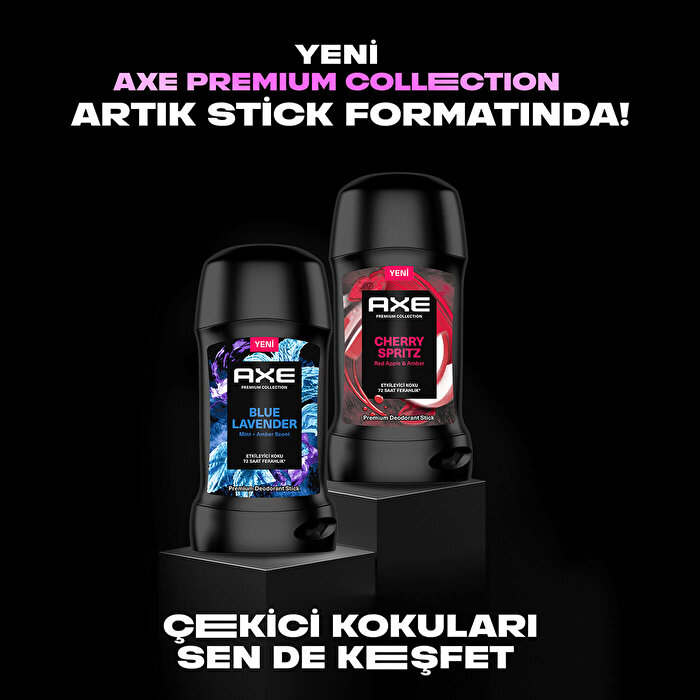 AXE’ın çekici ve etkileyici kokuları artık stick formatında! AXE Premium Collection’ın yeni stick deodorantı Blue Lavender ile her an çekici kok! Dünyaca ünlü parfüm uzmanları tarafından hazırlanan AXE Premium Collection Blue Lavender Stick, nane, lavanta ve amberin büyüleyici notalarını bir araya getiriyor. Üstelik lavanta ve nane esansiyel yağlarla zenginleştirilmiş formülü sayesinde etkileyici bir koku sunuyor.