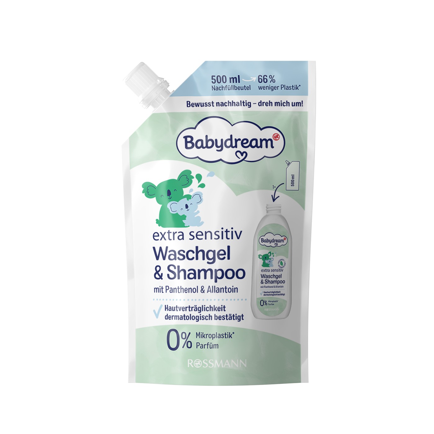 Parfüm içermeyen Babydream ekstra hassas yıkama jeli ve şampuanımız, hassas ciltleri ve ince saçları hafif yıkama maddeleriyle özellikle nazikçe ve derinlemesine temizler. Doğumdan itibaren ekstra hassas temizlik. Hafif yıkama maddeleri ve allantoin içeren formülü özellikle nazikçe temizler ve cildin doğal asit örtüsünü korur. Panthenol bakımlı bir saç yapısı sağlar.