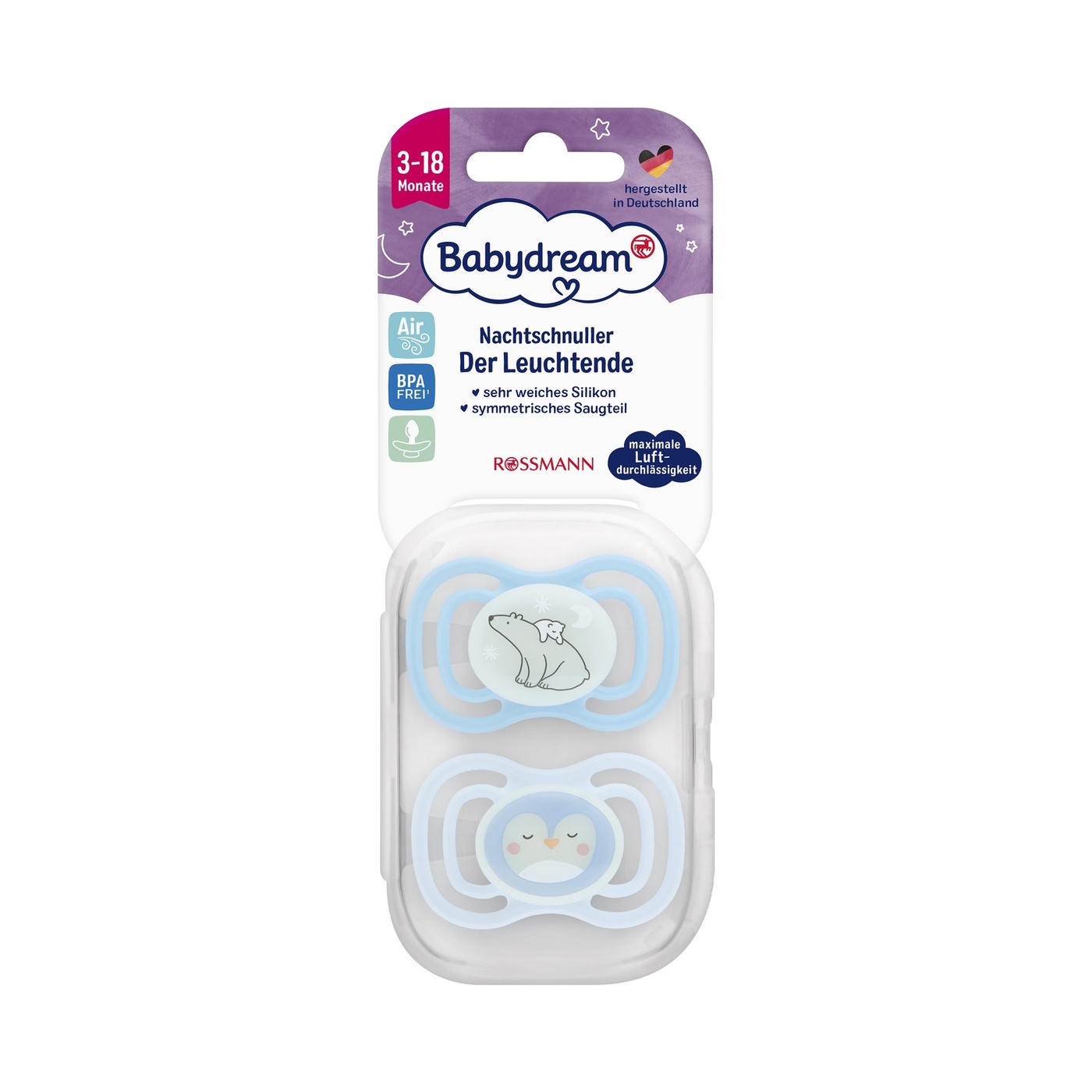 Simetrik emzik, doğal emme refleksini karşılar ve çene gelişimini destekler. Ekstra geniş açıklıklar sayesinde maksimum hava geçirgenliği sağlar. 180° döndürülebilir. Daha yoğun bir parlaklık etkisi için emziği kısa süreliğine gün ışığına veya lambanın altına yerleştirin (doğrudan güneş ışığından kaçının). Hijyenik mikrodalga hazırlığı için sterilizasyon kutusu dahildir.