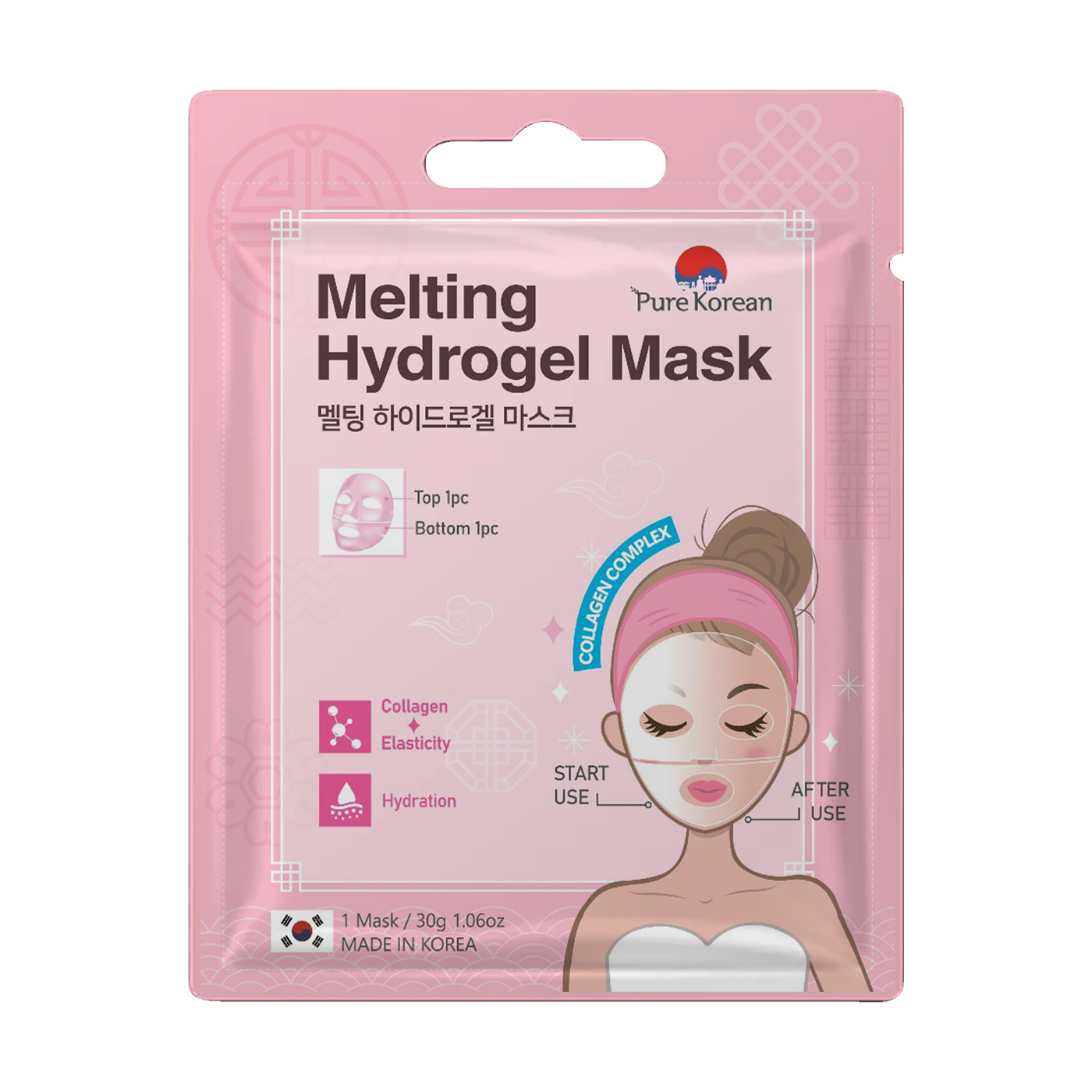 Pure Korean Melting Hydrogel Mask: İçeriğindeki kolajen ve ekstratlar ile cildinize bakım sağlayan hidrojel bir maskedir. Uygulamadan bir süre sonra şeffaflaşmaya başlar, erimenin etkisi gözlemlenir. İçeriğindeki kolajen ekstrat, asiaticoside, madecassic asit, asiatic asit, madecassoside ile cilde yaşlanma karşıtı bakım sağlayarak cildin genç görünümünü destekler.