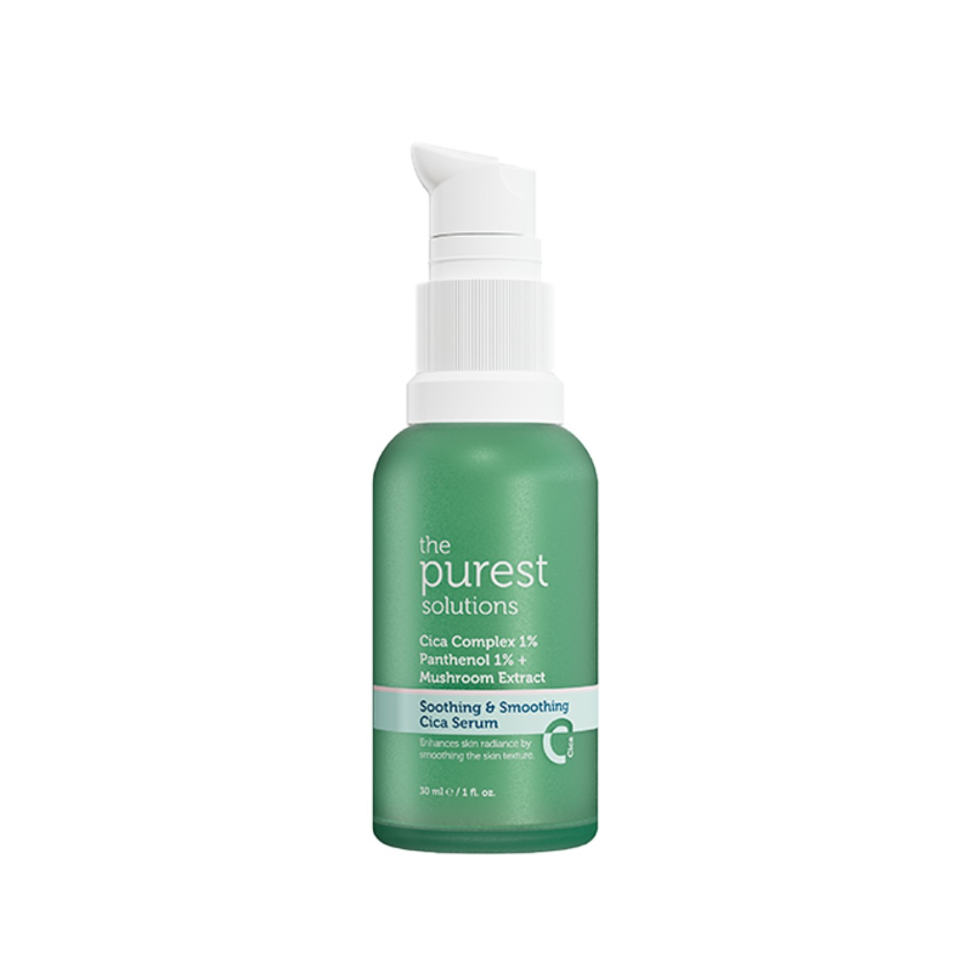 The Purest Solutions Soothing & Smoothing Cica Serum, Çevresel faktörlerin cilt üzerindeki etkilerine karşı korunmasına yardımcı olarak kızarıklık görünümünü azaltmaya yardımcı olur. Cildin nem dengesini destekleyerek dayanıklılığını artırır ve cilde yumuşak, canlı bir görünüm kazandırır.