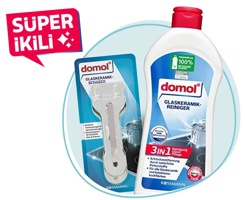 Yağ lekeleri, yanık izleri ve çizilme riskine karşı Domol’un süper ikilisi yanınızda. Güçlü temizleyici formül ve pratik kazıyıcı sayesinde ocaklarınız ilk günkü gibi parlar.