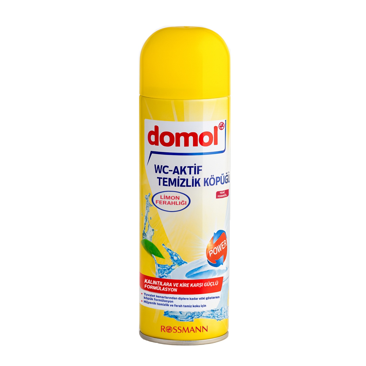 Ev, iş yeri, okul gibi yaşam alanlarında bakteri ve mikropların en yoğun bulunduğu tuvaletler, Rossmann'ın üstün Alman teknolojisi ile kullanıcılarına sunduğu Domol Limonlu Tuvalet Temizleme Köpüğü sayesinde daha temiz ve daha hijyenik bir hale gelir. Pratik ve kolay bir kullanım imkanı sağlayan tuvalet temizleyici ürün, tuvaletinize tertemiz ve ışıl ışıl bir görünüm kazandırmayı vadeder. Tuvaletinizin en ulaşılmaz noktalarını bile etkin bir şekilde temizlemeye yardımcı olur. Tuvaletlerde oluşan kir ve kireci kolayca söküp atmayı sağlar. İçeriğinde bulunan limon kokusu sayesinde banyodan tüm evinize ferah ve kalıcı bir temizlik kokusu yayılır.
