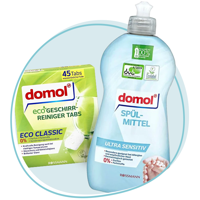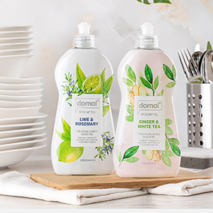 Domol’un bulaşık deterjanları, zorlu yağlarla savaşırken bulaşıklarınıza parlaklık ve hijyen kazandırır.