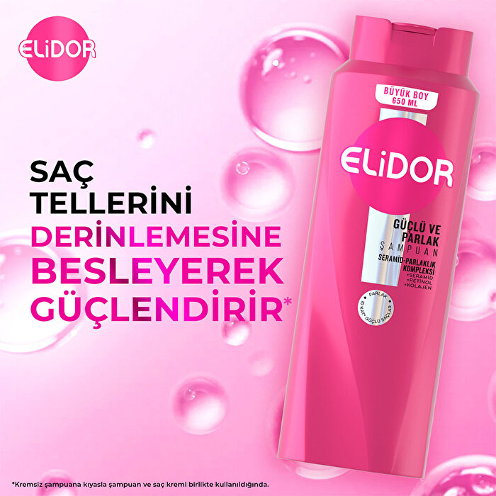 Elidor Güçlü ve Parlak Şampuan ile saçlarını güçlendirmeye ve ışıldamaya hazır mısın? Türkiye’nin 1 numaralı* saç bakım markası Elidor yenilenen görünümüyle saçlarını baştan sona dönüştürüyor! Daha güçlü, daha parlak ve daha canlı saçlar için şimdi harekete geçme zamanı!