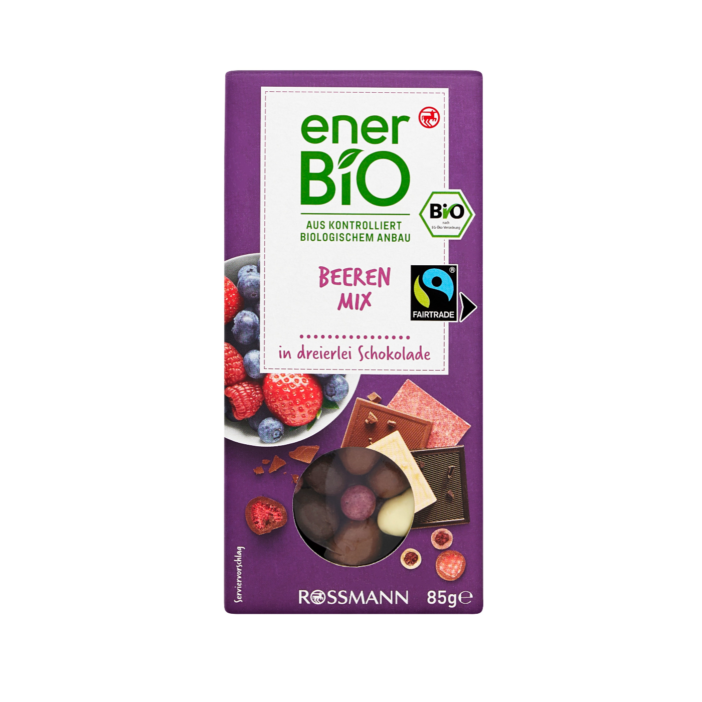 Bol meyve, bol keyif: Üç farklı çikolatadan oluşan enerBiO Berry Mix'imiz, meyveli meyveler ve ağızda eriyen çikolatayla lezzetli bir baş başa sohbete davet ediyor. Ahududu, yaban mersini ve çilek, beyaz, sütlü ve bitter çikolatayla bir araya geliyor; hepsi el yapımı ve ekstra organik sevgiyle hazırlanıyor.