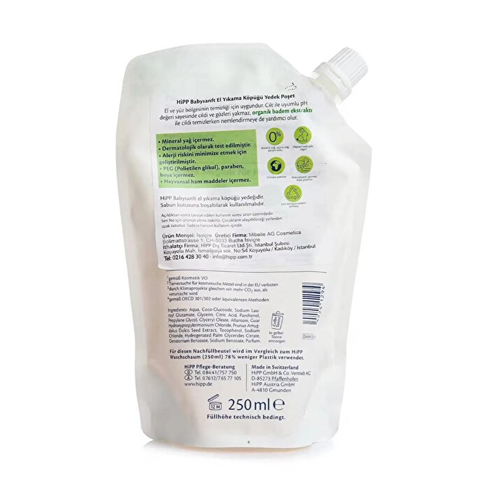 Yüz ve el temizliği için uygundur. Nötr pH değerinde olduğu için cilde zarar vermeden temizler. Kremsi köpük yapısı cilt dostudur. Gözleri yakmaz. Dermatolojik olarak onaylanmıştır. PEG (Polietilen glikol), paraben, mineral yağ, alerjen esansiyel yağlar, hayvansal ham maddeler, mikroplastik içermez.