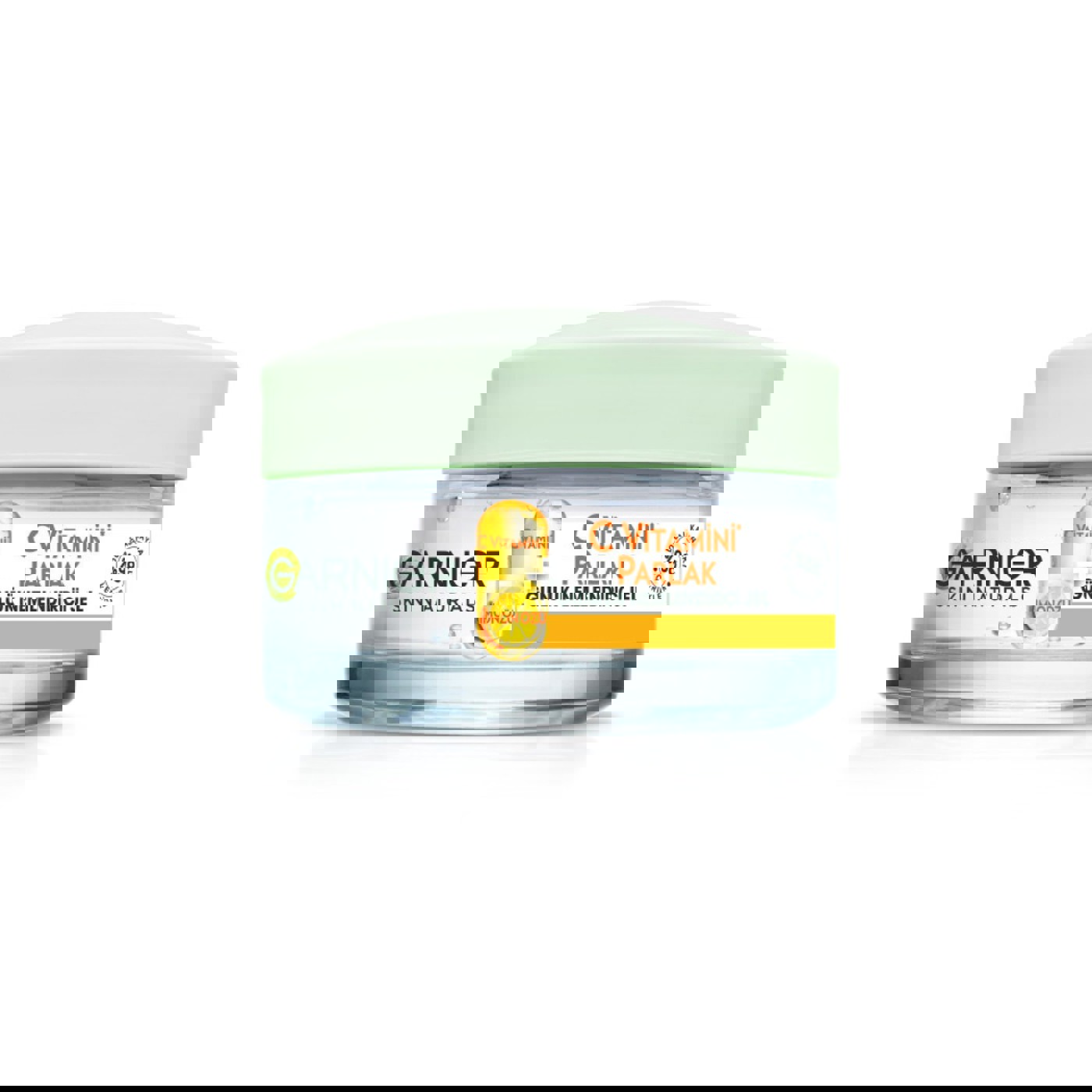 %98 doğal kaynaklı içeriklere sahip GARNIER C VITAMINI* PARLAK GÜNLÜK NEMLENDIRICI JEL'in C Vitamini* ve Limon Özü içeren formülü sayesinde cildiniz gözle görülür şekilde parlak ve daha taze görünür. *C Vitamini: C Vitamini Türevi Ilk kullanımda: Cilt 48 saat boyunca nemlenir1. Cilt daha taze görünür2. 4 hafta sonra: Cilt daha parlak ve daha az yorgun görünür2. 1 Instrumental test, 24 kadın/ 2 Tüketici testi, 50 kadın