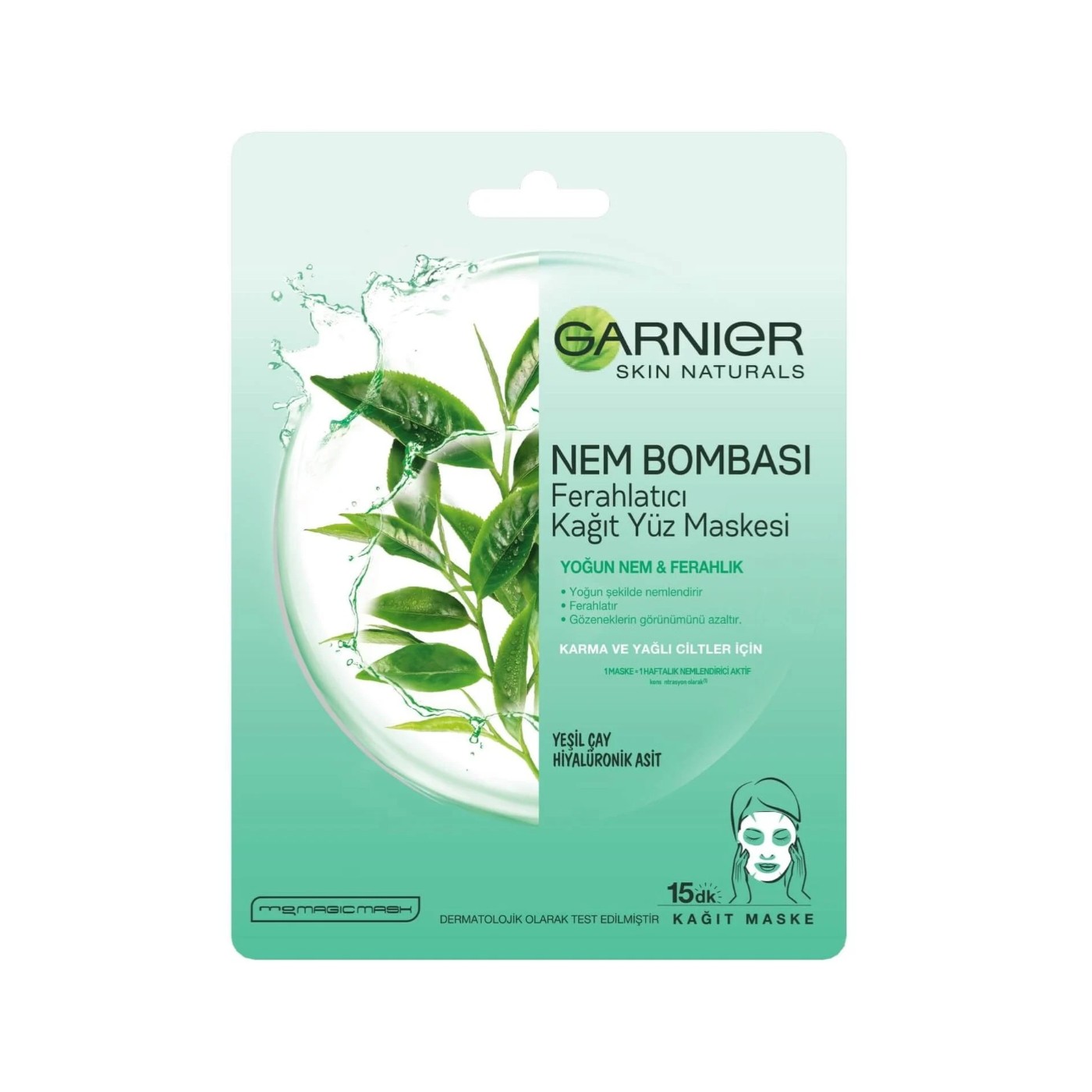 Nem Bombası Kağıt Yüz Maskesi, yoğun nemlendirici özelliğe sahip yeni nesil bir cilt bakım ürünüdür. Maskenin içinde bulunan ferahlatıcı ve arındırıcı konsantre formül, gerçek bir yenilik olarak yeşil çay özünü, hyaluronik asidi ve nemlendirici serumu bir araya getirir.