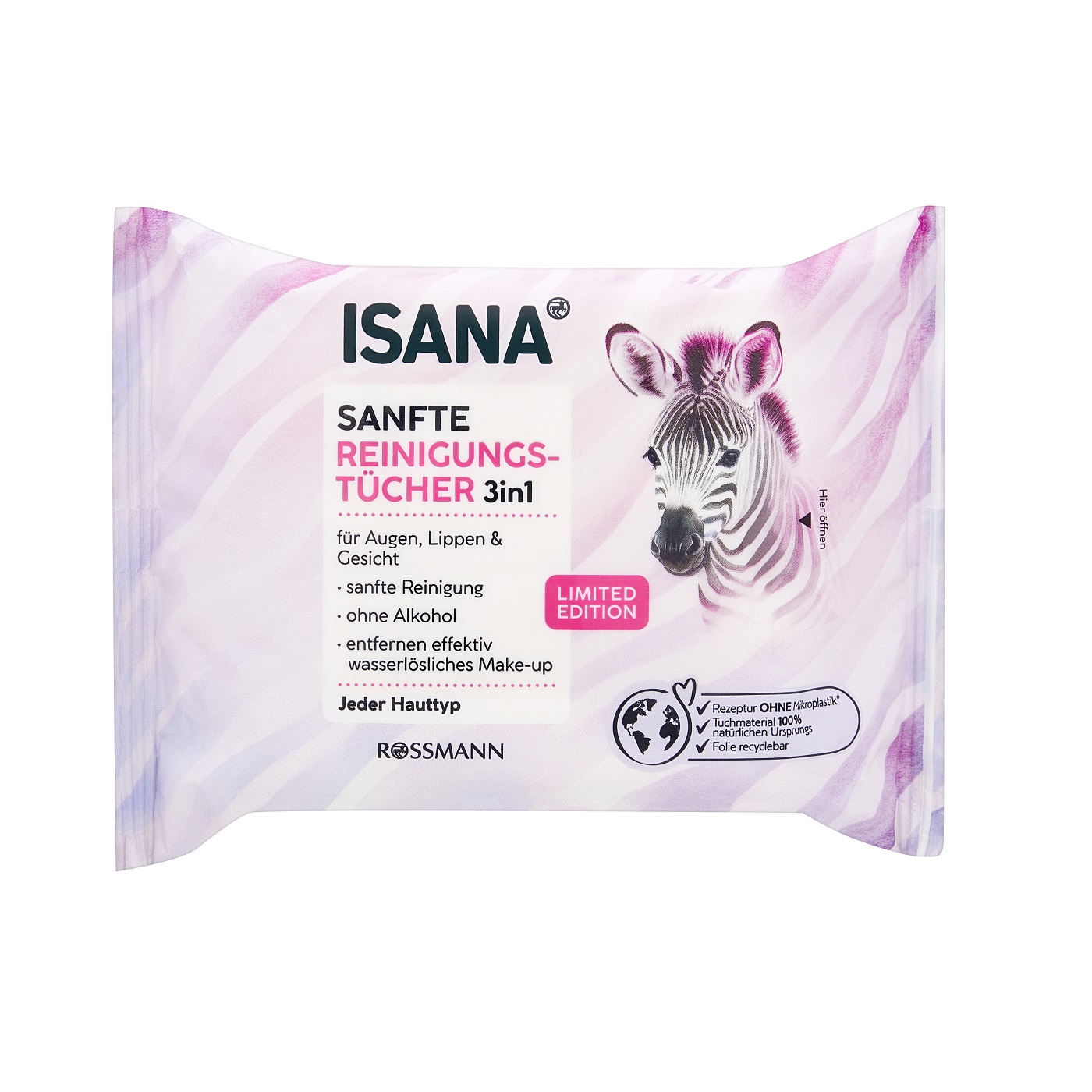 • Yumuşak dokulu Isana 3'ü 1 arada alkolsüz Yüz Temizleme Mendilleri, cildinizi makyaj, kir ve sebumdan nazik ve etkili bir şekilde arındırır.