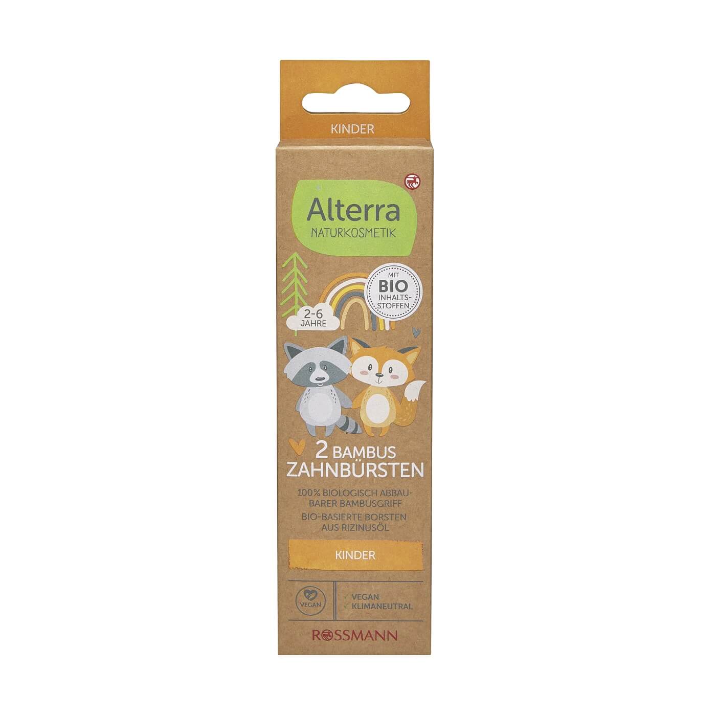 Alterra bambu saplı diş fırçası 2-6 yaş arası çocuklar için tasarlanmıştır. Fırçanın kılları hint yağından yapılmıştır. Vegan üründür. Klimaneutral (iklime zarar vermeyen) sertifikalı üründür.