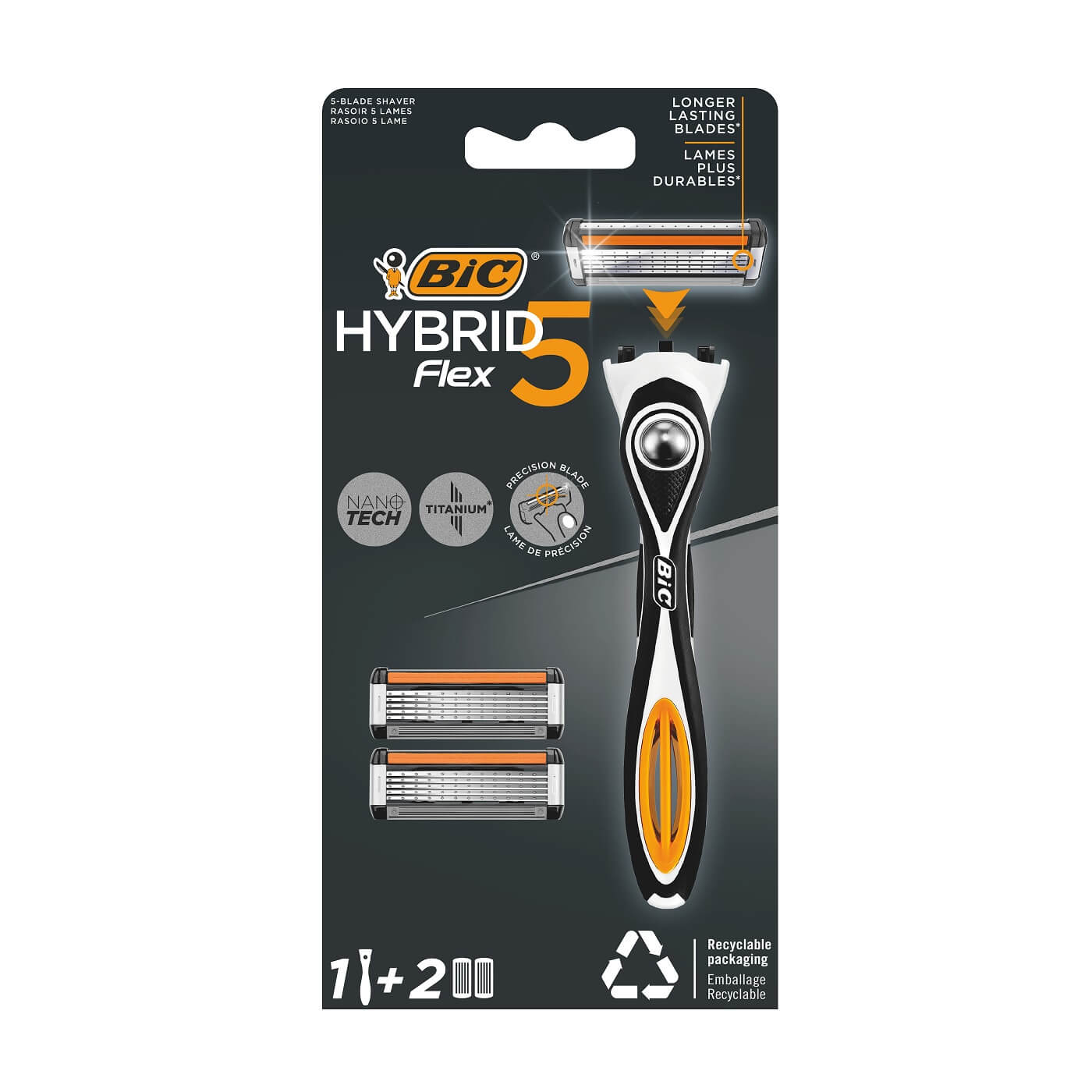hareket eden 5 nano teknolojik bıçakla BIC Hybrid 5 Flex erkek tıraş bıçağı ve