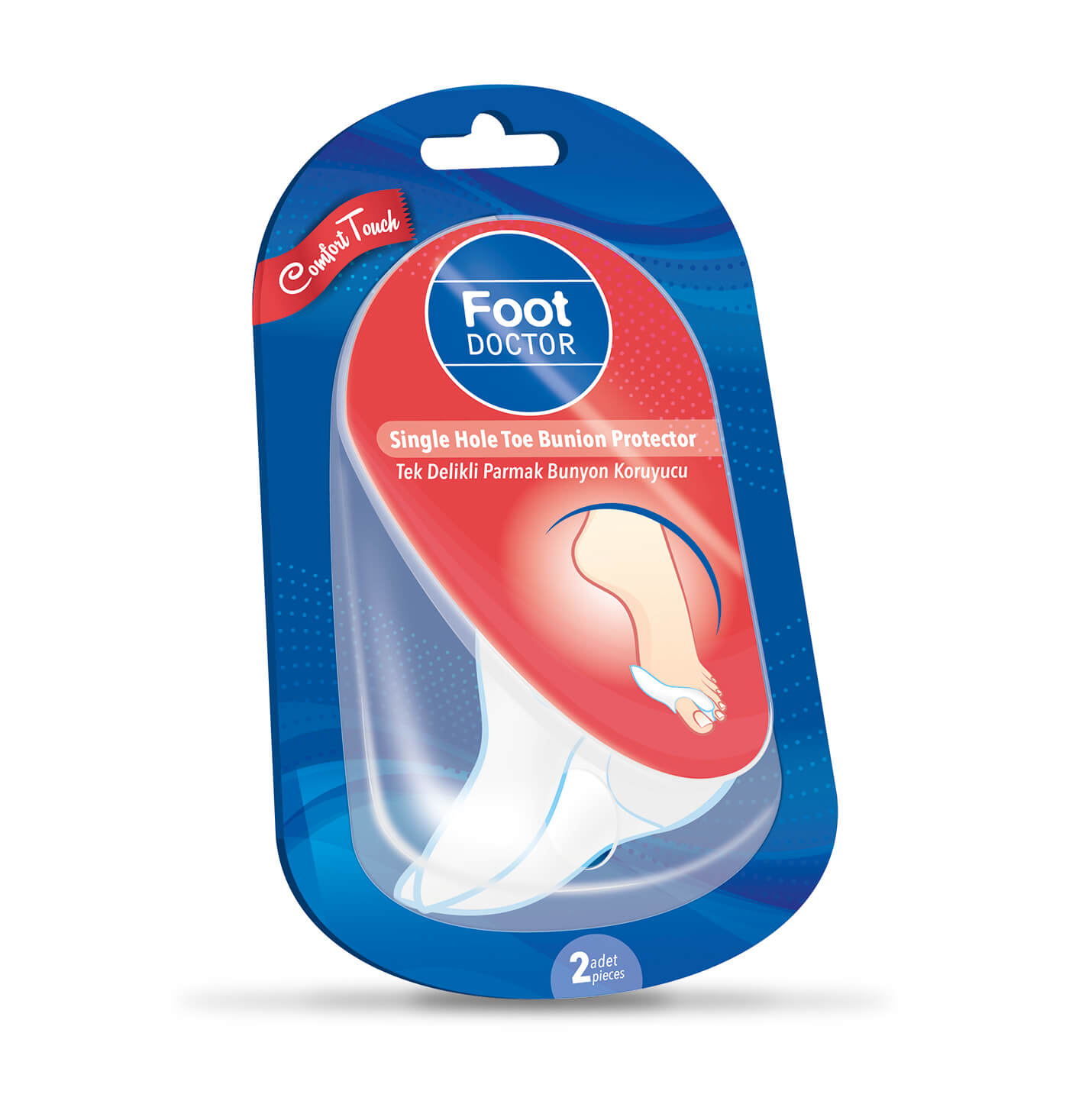 Foot Doctor Tek Delikli Ayak Parmak Bunyon Koruyucu ; Bunyonunuzu çarpma ve sürtünmeye karşı korur, baskıyı azaltarak uygun hizalamayı sağlar. Baş parmak ve ikinci parmak arasındaki sürtünmeyi önler. Ayak gücünü ve dengesini geliştirir. Ayağın yan tarafını (bunyonlar) sürtünmeden ve ayakkabılardan gelen basınçtan koruyarak ağrıyı azaltır. Uygun hizalamayı sağlar.
