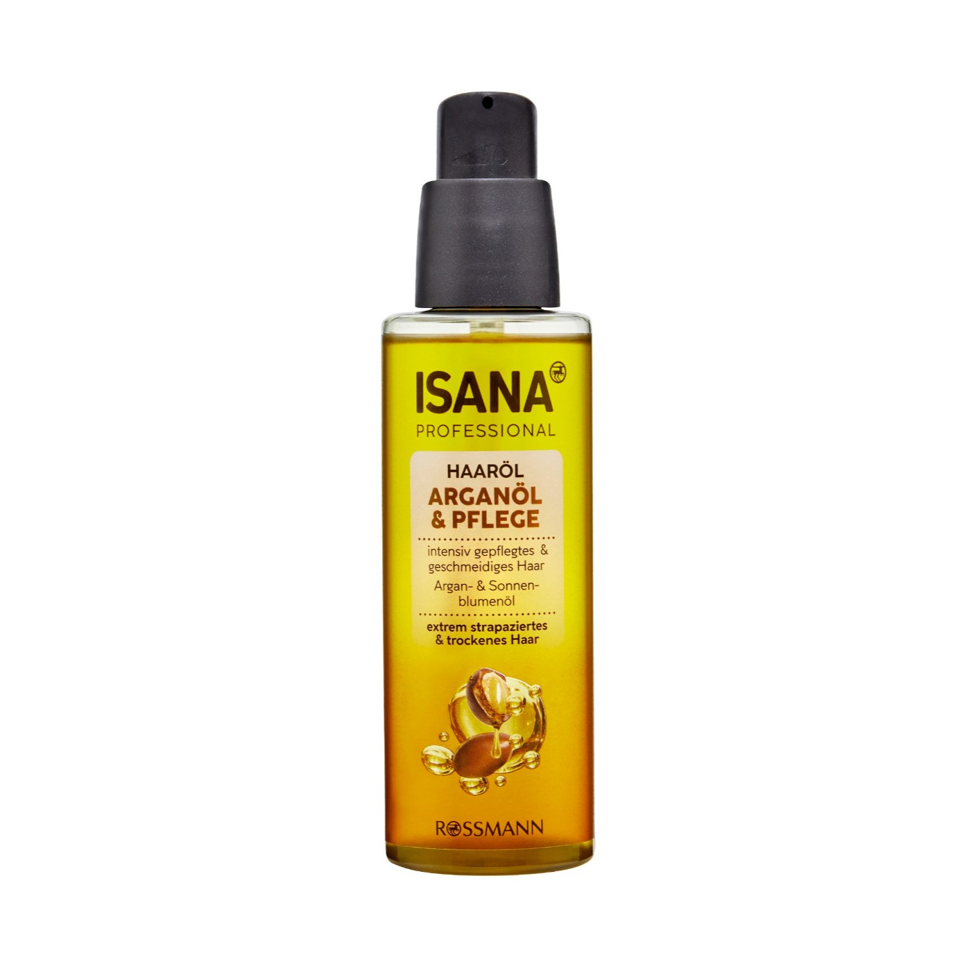 Isana Professional saç bakım yağı argan yağlı, kuru ve çok yıpranmış saçlar 100 ml, saçların ihtiyaç duyduğu canlılığı ve parlaklığı sağlamaya yardımcı olur. Kişisel bakım ürünleri kategorisinde bulabileceğiniz saç yağları, besleyici içeriği ve sıvı yapısıyla kolay bir uygulama deneyimi sunar. 100 ml gibi son derece tatmin edici ölçüsüyle uzun süreli kullanım avantajı sağlar. Isana kalitesinde üretilen saç yağına Rossmann farkıyla ulaşabilirsiniz. İçeriğinde yer alan ayçiçeği ve argan yağı sayesinde saç bakım yağı kuru ve yıpranmış saçlara bakım sağlamaya yardımcı olur. Vegan olan saç bakım yağı, dermatolojik olarak test edilmiştir.