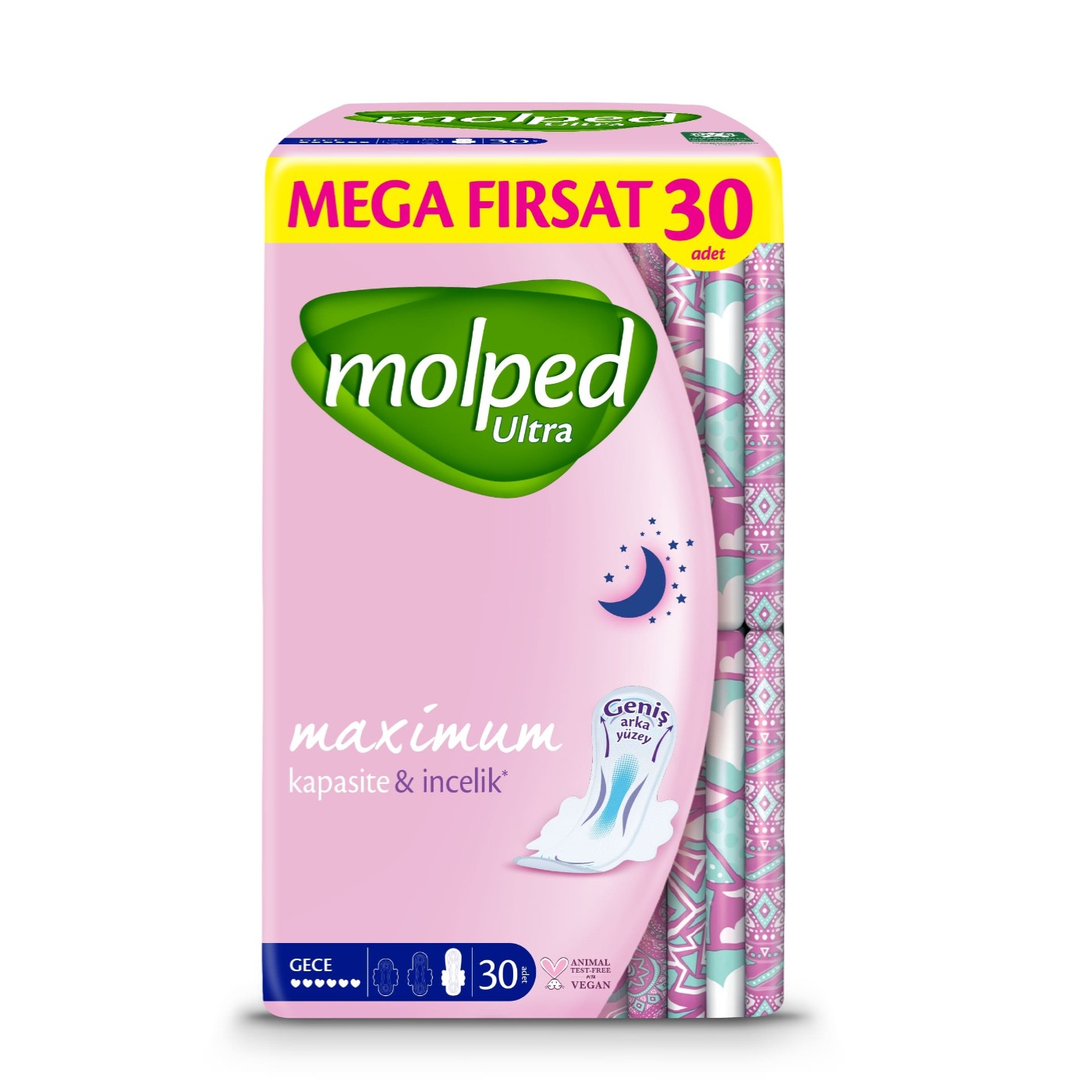 Molped Anatomik hijyenik ped, pamuksu yumuşaklıktaki üst yüzey ve nefes aldıran dokusu ile cildinizde gün boyu her koşulda üstün koruma sağlar. Sızıntıları engelleyen şekli ile çamaşırınıza tam uyumludur. Sıvıyı hızla hapseden emici bölge gün boyu maksimum kuruluk sunar. İç çamaşırınızı tam saran özel üçlü geniş kanatlar ve 2mm'den ince vücuda uyumlu şekli ile maksimum güven verir. Renkli ve desenli paketler içerir. Molped Anatomik hijyenik ped paraben ve klorin içermez. Dermatolojik olarak test edilmiştir. Rahatınız ve sağlığınız için günlük pedinizi en geç 3-4 saatte bir değiştirmenizi öneririz. Molped ürünlerinin tamamı helal sertifikalıdır.
