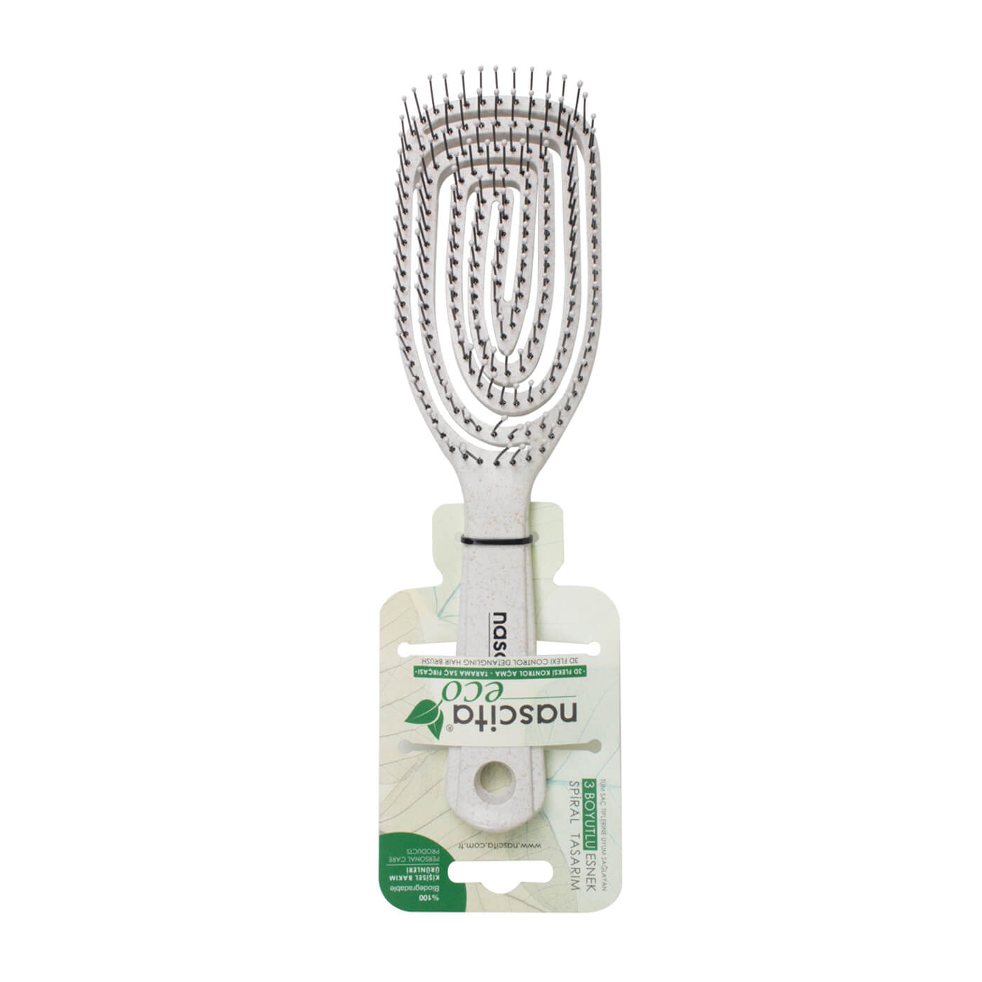 3D özelliğine sahiptir. Saçı yıpratmadan kolayca açmanıza yardımcı olur. Ürün gövdesi geri dönüştürülebilir buğday samanından yapılmıştır.