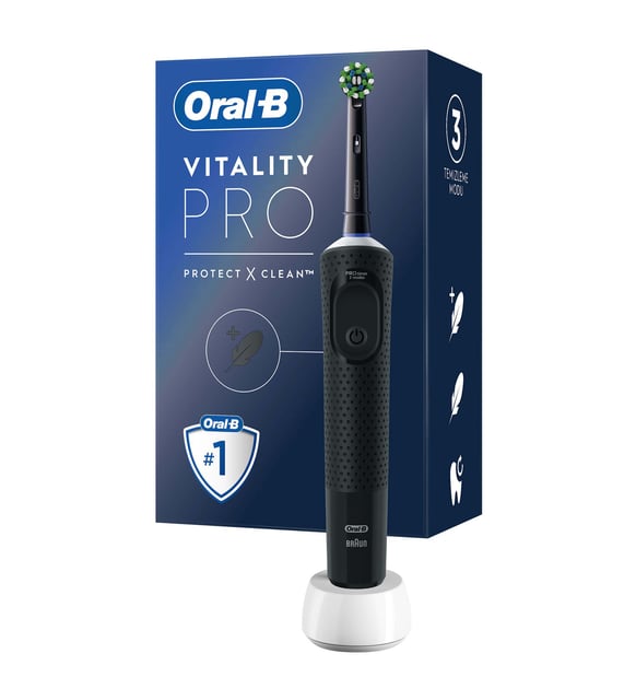 Oral-B Vitality Pro elektrikli diş fırçası, sıradan manuel diş fırçasına kıyasla klinik olarak kanıtlanmış üstün temizlik sunar. Diş fırçasının 3 fırçalama modu vardır: günlük temizlik, hassas ve inanılmaz nazik bir deneyim için hassas plus modu. Gövdede yer alan zamanlayıcı, diş hekimlerinin tavsiye ettiği biçimde 2 dakika boyunca diş fırçalamanız için sizi uyarır. Hepsinden öte, tüm bunlar size Oral-B tarafından sunulur – dünya çapında diş hekimlerinin tercih ettiği 1 numaralı marka.