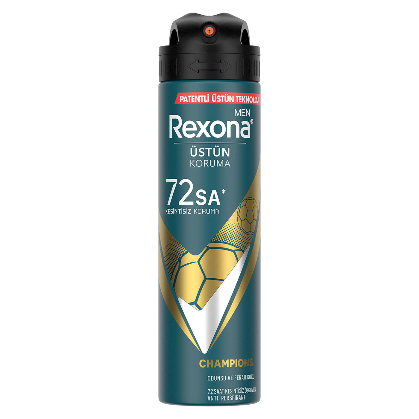 Erkekler için özel olarak tasarlanan yeni erkek deodorantı Rexona Men Champions Antiperspirant Erkek Sprey Deodorant ile tanışmaya ve uzun süren ferahlık hissine hazır mısınız? Özgürce harekete geçmek için ihtiyacınız olan tek şey bir deodorant! Rexona ile ter ve ter kokusundan korkmadan hareket edin. Hareket ettikçe odunsu kokunun ve ferahlık hissinin tadını çıkarın. Rexona Men Champions Antiperspirant Erkek Sprey Deodorant, sizi asla yarı yolda bırakmaz! Antiperspirant içeriğiyle yeni Rexona Men Champions Antiperspirant Erkek Sprey Deodorant; terlemeye, terleme dolayısıyla oluşan ıslaklığa ve kokuya karşı etkin koruma sağlar. Rexona’nın önceki aerosol teknolojisine göre daha üstün olan ve 10 yılda geliştirilen patentli mikroteknolojiyle üretilen Rexona Men Champions Antiperspirant Erkek Sprey Deodorant her hareketinizde yanınızda! Yalnızca gün boyu değil, tam 72 saat boyunca kesintisiz ter kokusu ve ıslaklık koruması sağlar. 72 saat boyunca duştan çıktığınız an kadar ferah ve temiz hissedeceksiniz! Ter ve ter kokusundan korkmadan, özgüvenle hareket edin. Ter kokusu önleyici deodorant arıyorsanız, Rexona Men Champions Antiperspirant Erkek Sprey Deodorant tam size göre. Rexona Men Champions Antiperspirant Erkek Sprey Deodorant, her hareketinizde en büyük destekleyiciniz olacak. 10 yılda geliştirilen patentli üstün mikroteknoloji, deodorant kategorisi için devrim yaratacak. Rexona Men Champions Antiperspirant Erkek Sprey Deodorant’ın ferahlık etkisi ve odunsu kokusu gün boyu değil, tam 72 saat sizinle kalacak. Rexona Men Champions, işte şampiyonların kokusu!