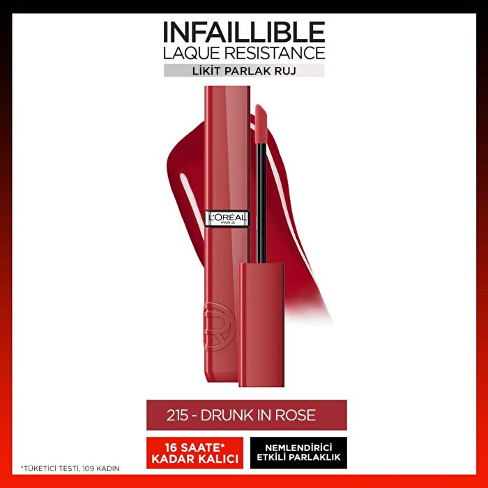 Yoğun parlak ve karşı konulamaz renkler: INFAILLIBLE LAQUE RESISTANCE LİKİT PARLAK RUJ! Infaillible dayanıklı makyaj ailesinin en yeni üyelerinden Infaillible Laque Resistance Likit Parlak Ruj kolay uygulama sağlayan açılı uçlu fırçasıyla tek uygulamada yoğun ve güçlü renkler sunarken tam 16 saate kadar* kalıcı nemlendirici etkili parlaklık sağlar.