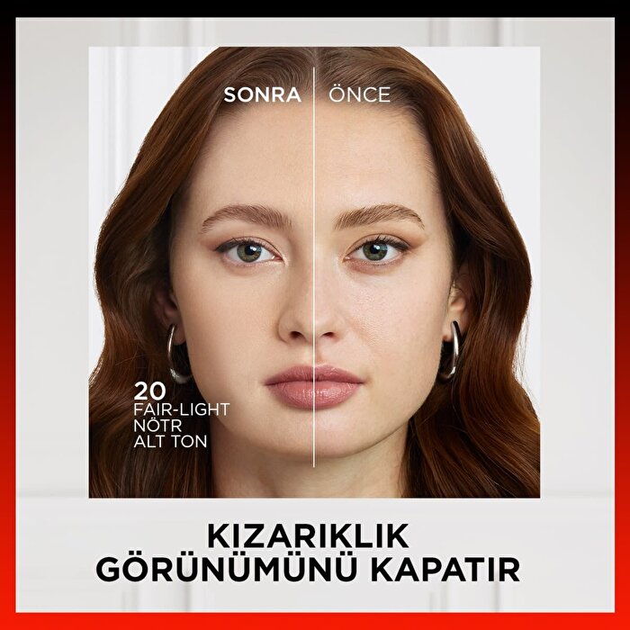 - Kızarıklık görünümünü kapatır