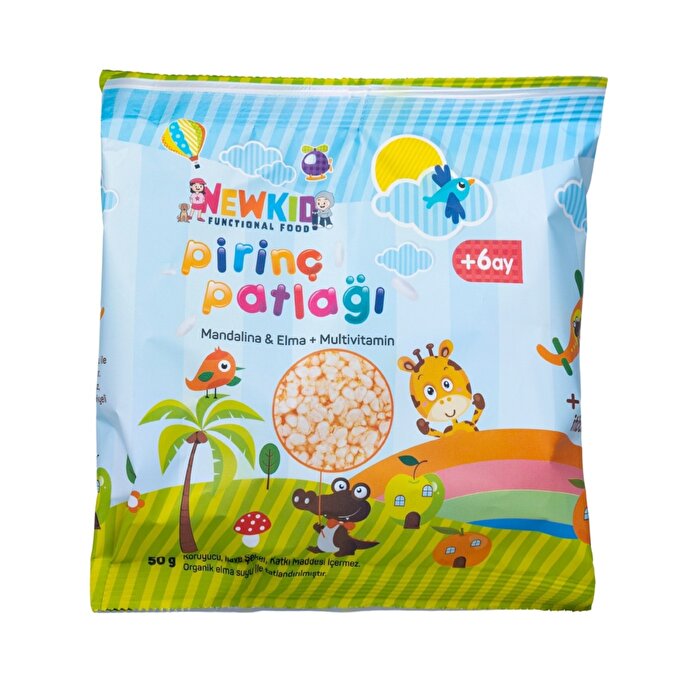 - Bebek ve çocuklara özel organik elma suyu konsantresi ve mandalina suyu konsantresi ile tatlandırılmış vitamin ve mineralli pirinç patlağı.