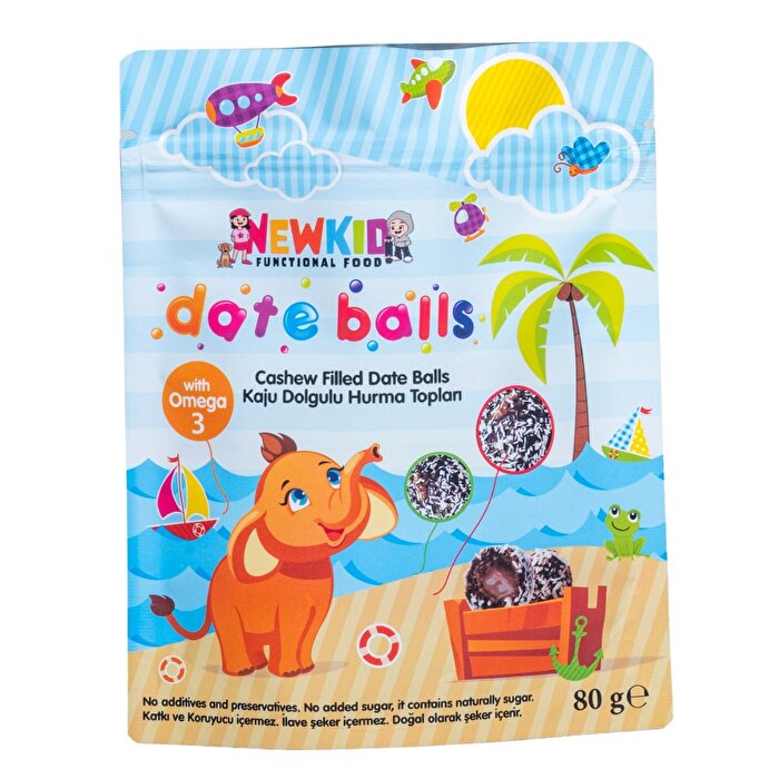 İçindekiler:Hurma, kaju (%14), kakao kitlesi, schizochytrium sp. (EPA ve DHA kaynağı)* (%5,4) nohut unu, hindistan cevizi, doğal blueberry aroması.