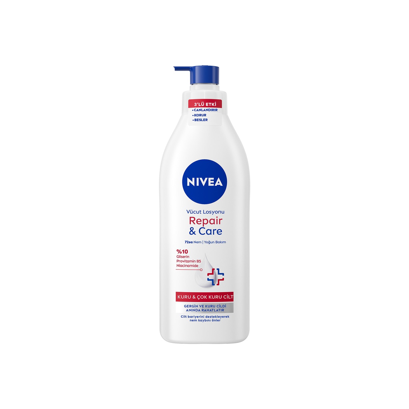 - NIVEA Repair&Care Yoğun Nemlendirici Vücut Losyonu 400ml: Gergin ve kuru cildi anında rahatlatır.