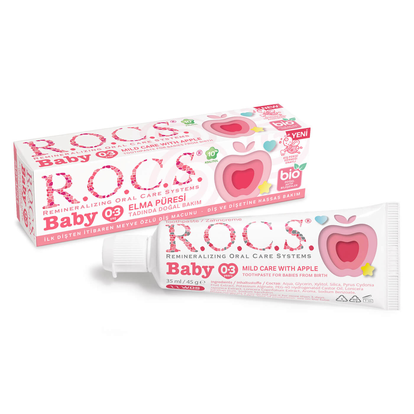 İlk dişten itibaren bebeklerin ağız bakımı içindir. Bebeğinizi mutlu edecek elma püresi tadı doğal içeriklerden elde edilmiştir. Bebekler diş macununu tüküremediklerinden florür, SLS ve renklendirici içermez. İçeriğindeki Ksilitol ve aljinat sayesinde çürüklere karşı korumaya yardımcıdır. Ayva meyvesi ekstratı diş çıkartma döneminde bebek dişetlerinin rahatlamasına ve korunmasına yardımcı olur.