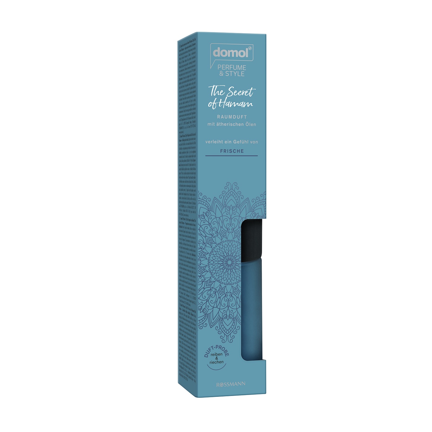 Domol Perfume & Style oda kokusu The Secret of Hamam ile evinizde asil kokulu anları dört gözle bekleyin. Kokuların sırrı, içimizde uyandırdıkları duygularda yatar. The Secret of Hamam duyuların özgürce nefes almasını sağlar ve ruhu tazeler. Aromatik bitkilerin ve narin çiçeklerin eşsiz birleşimi sizi bir sağlık vahasına götürür ve beden ve ruh üzerinde canlandırıcı bir etkiye sahiptir. Bu koku bileşiminin canlandırıcı etkisi nörobilimsel olarak kanıtlanmıştır. Koku şişesi, ahşap kapak, çubuklar ve yüksek kaliteli parfümden oluşan şık kombinasyon, yaşam alanının her yerinde kullanılabilir ve haftalarca taze bir nota verir.