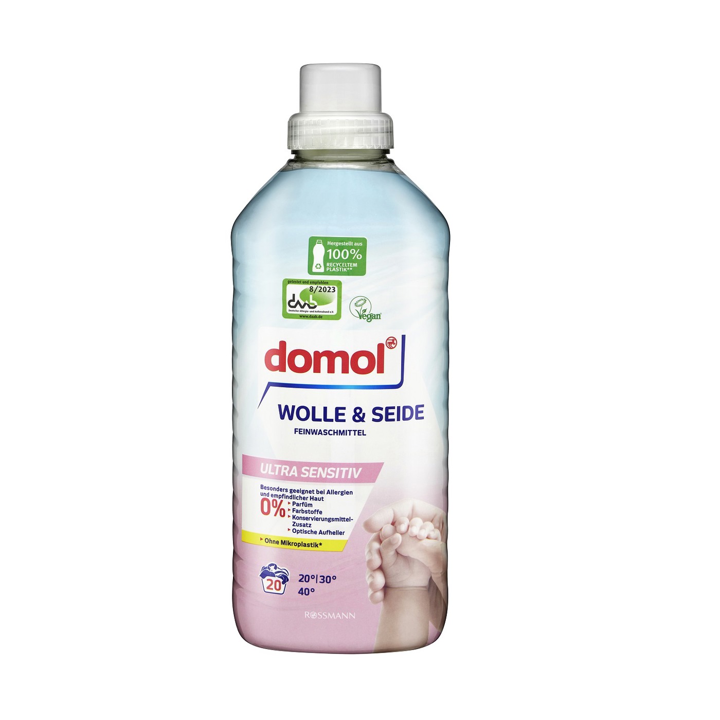 Domol ultra hassas çamaşır makinesi deterjanı yün, ipek, kaz tüyü ve kaşmir gibi hassas tekstiller için uygundur. Tekstillerdeki bakım talimatlarına uyun ve çamaşırları rengine, kirlilik derecesine ve sıcaklığa göre ayırın. Bakımı kolay tekstiller için çamaşır makinesini her zaman yarısına kadar doldurun. Tekstilleri tersten yıkayın ve kurutun. Mümkün olan en düşük sıcaklıkta yıkayın, 20 °C'den itibaren aktiftir. Suyun sertliğini yerel su tesisatınızdan öğrenebilirsiniz.