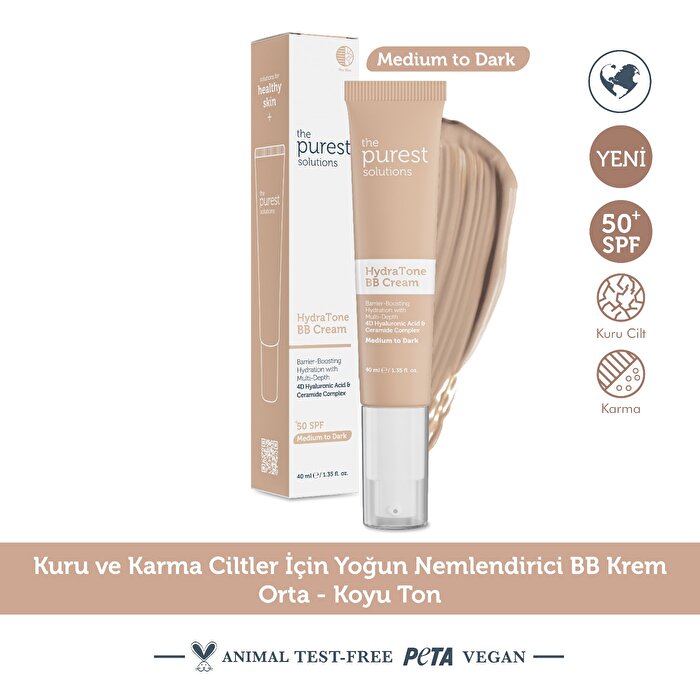 Kuru ve Karma Ciltler İçin Yoğun Nemlendirici BB Krem, kuru ve normal ciltler için özel olarak formüle edilmiş, nemlendirici etkili bir BB kremdir. Ceramide kompleksi ve 4 Boyutlu Hyaluronik Asit ile cildin nem dengesini yoğun şekilde destekler ve dolgun, sağlıklı bir görünüm kazandırır. C ve E vitamini içeriği ile cildi aydınlatır, çevresel etkenlere karşı korur ve cilt dokusunu iyileştirir. SPF 50+ filtresi sayesinde UV ışınlarına karşı yüksek koruma sunar, günlük kullanımda güvenle tercih edilebilir. Hafif dokusu sayesinde ciltte ağırlık yapmadan doğal, canlı ve ışıltılı bir görünüm sağlar; makyajsız güzellik hissi arayanlar için ideal bir seçimdir.
