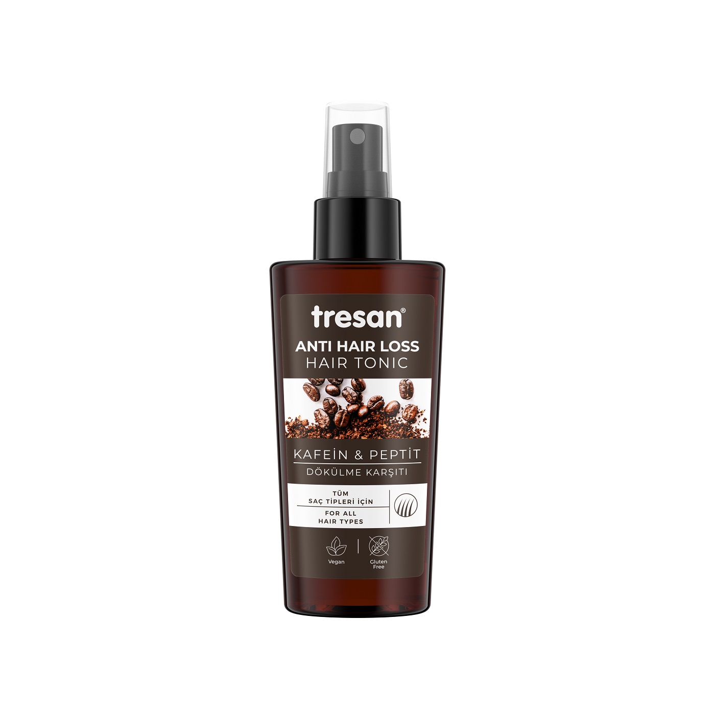 Tresan Kafein & Peptit Saç Toniği, zengin formülü ile saç köklerinin beslenmesine, güçlenmesine ve saç dökülmesinin azaltılmasına yardımcı olur. Saçlara canlılık, parlaklık ve yumuşaklık kazandırır. İçeriğinde bulunan Kafein, saç derisine nüfuz ederek saç tellerine dolgun görünüm sağlamaya destek olur ve sağlıklı uzamasını destekler. Peptit ise saç tellerinin elastikiyetini arttırmaya ve saçların daha sağlıklı büyümesine katkıda bulunur.